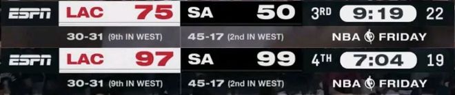马刺25分史诗逆转快船:文班27+10+4帽 小卡30+9连40场20+